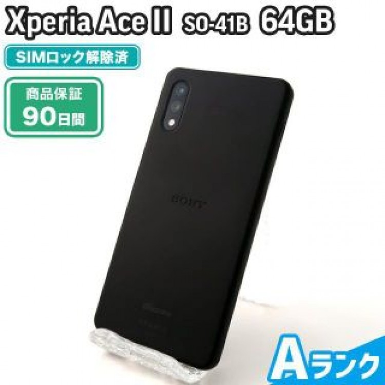 Xperia(エクスペリア)のSO-41B Xperia Ace II 64GB ブラック docomo 中古 Aランク 本体【エコたん】(スマートフォン本体)が通販できます。お客様に安心してご購入いただけるよう全ての商品に商品保証がついております。万が一、お買い求めいただいた商品がネットワーク利用制限(通信会社により通信機能を止められた状態)となった場合は、保証期間に関わらず保証対応いたします。全商品にバッテリー点検、データ抹消処置、清掃・除菌を行ってます。--------------------【商品名・カラー・キャリア】SO-41BXperiaAceIIブラックdocomo【商品のランク】Aランク【製造番号(IMEI)】350603121763194【SIMロック状態】SIMロック解除済み【ネットワーク利用制限】○【バッテリー確認日】2022年7月11日【バッテリーの状態】内臓電池の充電能力は良好です(80%以上)【ピークパフォーマンス】RMJガイドライン機能評価基準で確認済み【保証期間】90日間※当店は複数のネットショップで同時に販売していますため、ご注文いただいてもご契約いただけない場合がございます。--------------------〈商品ランクと保証期間〉S 未使用品・新品同様の状態A 目立つ傷がなく非常にきれいな状態・液晶への傷がない・外装の傷・汚れが微細B 細かな傷・軽微な傷など使用感がある状態・液晶に薄い傷がある・外装に微細な傷・汚れが多少見受けられるC 目立つ傷や擦り傷など明らかな使用感がある状態・液晶に目立つ傷、複数の傷がある・外装全体に傷・汚れ・塗装剥がれが目立つ--------------------〈当店の許可等〉・東証スタンダード:9425・古物営業許可:大阪府公安委員会認定第621011000280号・プライバシーマーク 第21000084号・リユースモバイル事業者認証 第201101号・ISO/IEC27001、JQA-IM1839(登録範囲/モバイルリファビッシュセンターにおけるリユースモバイル端末のリファービッシュおよび付帯する業務一式)--------------------