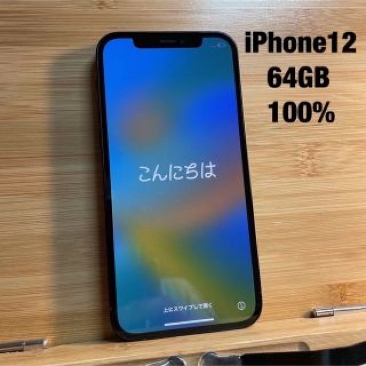 iPhone(アイフォーン)の【SIMロック解除済・バッテリー100%】iPhone 12 64GB ブラック(スマートフォン本体)が通販できます。商品の情報機種名:iPhone12カラー:Black容量:64GBキャリア:au(SIMロック解除済)残債:なし(ネットワーク利用制限○)バッテリー残量:100%(当方確認時)IMEI:353653124865055端末の状態:特に目立った傷はなく、状態は良好です。※動作確認後、アクティベーションロック解除(iPhoneを探すOFF)・初期化は共に完了しておりますので、その点ご安心いただければ幸いです。※本体のみの発送となります。緩衝材(プチプチ)に包み,配送中に動きや衝撃がないように梱包し発送させていただきます。※除菌/清掃をした上で梱包致しますが、細かな塵埃が取りきれていない場合はご容赦下さい。※他のフリマサイトにも出品しておりますので、予告なく出品を停止する等の対応を取らせて頂くことがございます。ご容赦くださいませ。是非ご購入宜しくお願い致します。アイフォーンアイフォンFaceID顔認証AppleアップルAppleiPhone1264GBブラックSIMフリーブランド:AppleiPhoneiPhone12発売日:2020/10/23画面サイズ:6.1インチ内蔵ストレージ容量:64GBSIM情報:SIMフリー対応SIMサイズ:nanoSIMスマートフォン特徴:耐水、防水機能ワイヤレス充電GPS機能認証機能:顔認証ApplePay:対応センサー:加速度センサージャイロセンサー地磁気センサー(コンパス)光センサー近接センサー気圧センサー色:ブラック系